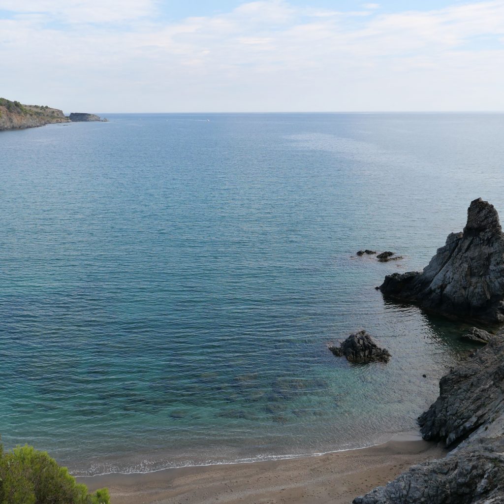 Bereits kurz hinter Portbou eröffnet sich das Panorama auf die Küstenlinie des Cap de Creus, ein Vorgeschmack auf das, was uns am nächsten Tag erwartet. Der Weg führt uns auf rund 250 Meter Höhe hinauf. Immer wieder mit Blick auf die glitzernde See, bevor er über Colera an den malerischen Strand Platja de Garbet wieder hinab ans Meer verläuft. Unterwegs legten wir gemütliche Pausen ein und genossen die Ruhe, kaum ein Wanderer war unterwegs. Wir waren gespannt inwiefern sich das noch ändern sollte.